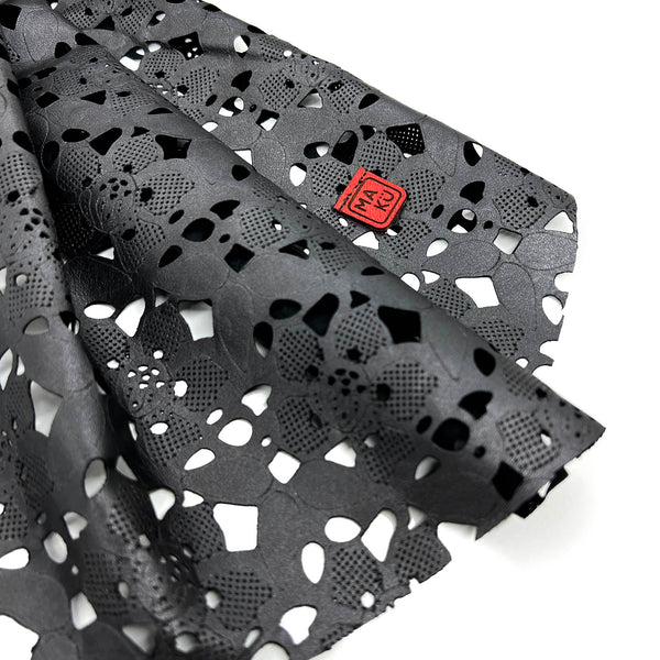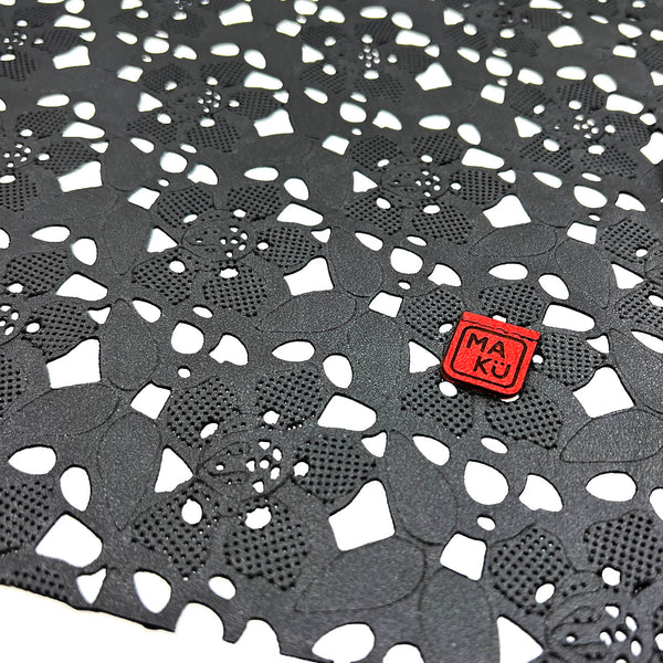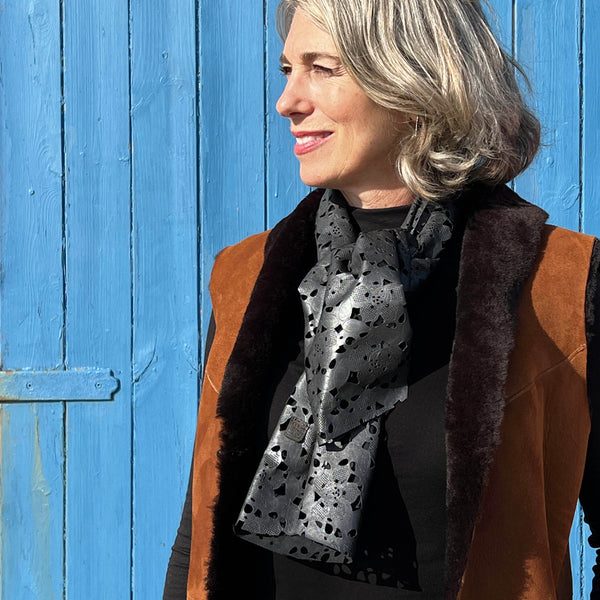 Our LEATHER LACE scarves are a good example of MAKU’s ‘minimum intervention’ approach to making use of production discards. As soon as we discovered these stunning, intricately cut black leathers we knew just what we had to turn them into… with some careful cutting, plus the addition of a single seam and our MAKU logo tab, we have transformed surplus stock leather into limited edition statement accessories