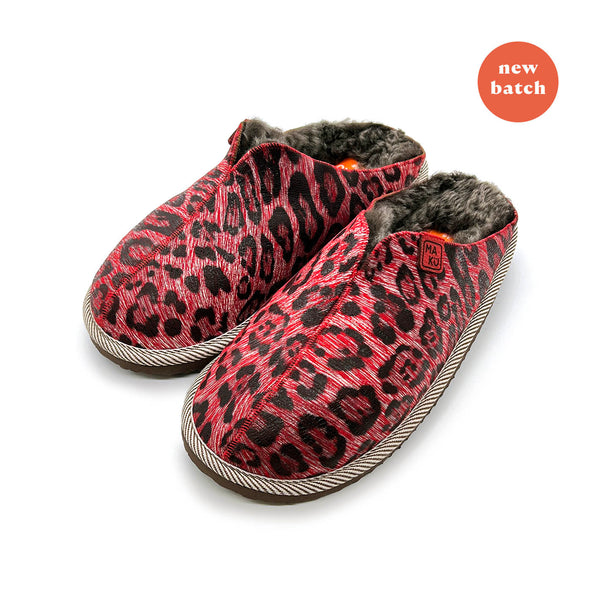 POLIN Punk Leopard Raspberry is a super-limited edition of just 5 slippers – grab yours while you can! The number of pairs we can produce per batch is determined by the amount of sheepskin or leather discards we are able to source in any particular finish. We design everything carefully so as to waste as little as possible during the production process.