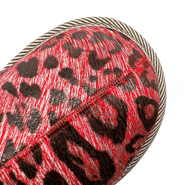 POLIN Punk Leopard Raspberry is a new anarchic micro batch! Handmade using bold animal print leather with a raspberry, black and silver design, they are lined with cosy variegated grey sheepskin offcuts. POLIN Punk Leopard Raspberry have a hidden layer of handmade woollen felt underfoot, are finished with our trademark striped trim and have light, hard-wearing textured soles.